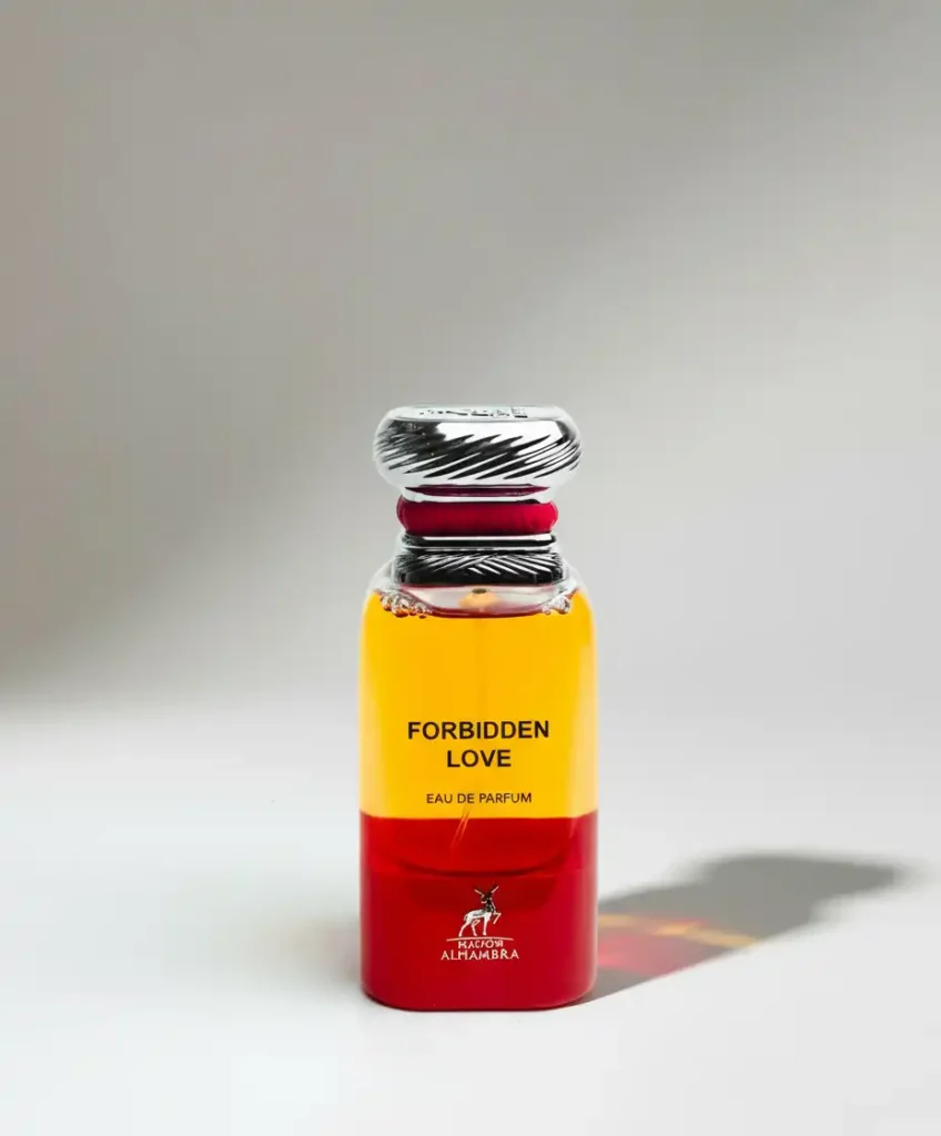 the fragrance Maison Alhambra Forbidden Love, which is a unisex amber floral perfume inspired by Tom Ford’s Lost Cherry.